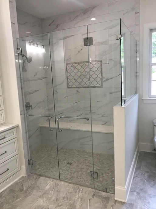 Our frameless shower enclosures will bring an elegant, luxurious look to your bathroom renovation. Framless shower enclosures are made to fit your expecific shower design. Our shower glass thickness is 3/8" to ensure durability and stability. All of our frameless angled units are made mitered to give a clean finish.